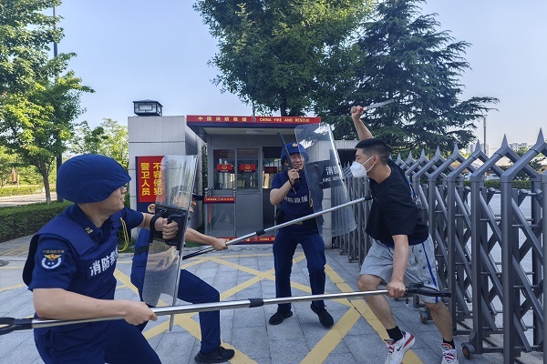 为进一步加强营区安全管理,增强消防员自我防范意识和防护能力,提升队伍应对突发事件的快速反应能力,6月5日,西咸支队组织开展营区应急处突演练。