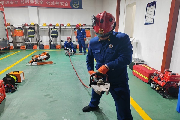 学习中,值班站长随机抽取人员对机动链锯、无齿锯的器材名称、性能参数、功能用途、操作程序、维护保养及注意事项进行讲解操作。在讲解和操作中,值班站长当场指出讲解过程中存在的问题。随后,每名队员对装备器材都进行了讲解和操作,训练效果显著。最后值班站长提出要求:在日常执勤训练当中,出现对器材装备使用不明白的地方,要及时提出疑问,确保能够熟练操作手中装备,真正做到器材装备操作规程和使用方法准确无误。