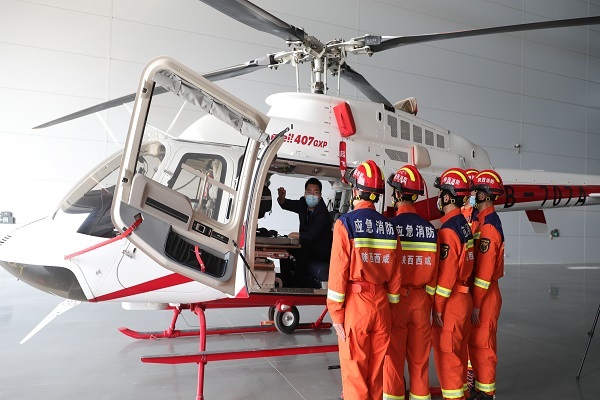 西咸消防支队对标“全灾种、大应急”职能定位,全面发挥空中指挥、火灾扑救、应急救援以及执行大型活动空中应急备勤保障等任务,与陕西秦汉通用航空有限公司达成购买贝尔412中型直升机和贝尔407医疗构型直升机两种机型服务,选派8人进驻陕西秦汉通用航空有限公司开展直升机救援训练。