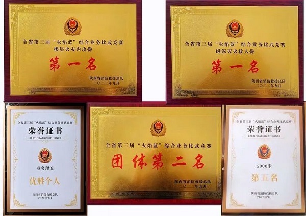 9月13日至9月15日,陕西省消防救援总队第三届“火焰蓝”综合业务比武竞赛在训保支队隆重举行,西咸消防支队凭借顽强的毅力和深厚的体能储备,奋勇拼搏,敢打敢拼,小支队大作为,在全省12支代表队中脱颖而出,勇夺团体总分第二名,创历史佳绩。