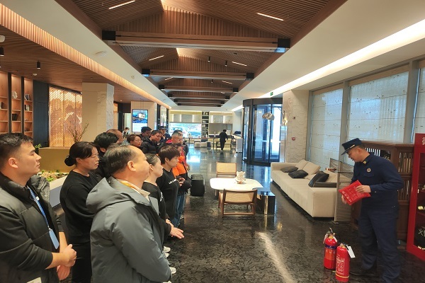 培训中,宣讲员系统讲解了消防安全知识、各类消防器材使用方法、如何预防火场有害气体、在火灾现场如何自救逃生和消防安全“四个能力”等系列消防安全知识。并结合近期国内典型火灾案例对酒店行业消防安全工作进行深入详实的讲解。培训结束后,演练模拟酒店二楼客房发生火灾,发现“火情”后,酒店负责人立即启动应急预案,并迅速组织对人员疏散,永和路小型消防救援站立即赶赴现场展开灭火救援。