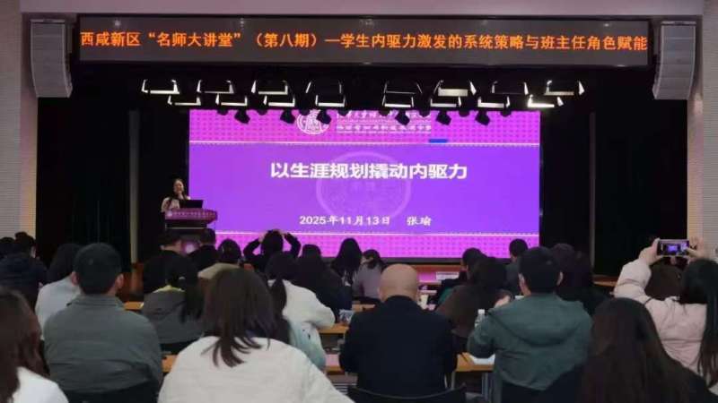 11月13日,由西咸新区教师发展中心主办、西咸新区秦汉中学承办的西咸新区名师大讲堂活动(第八期)开讲。活动以“点燃内在引擎:学生内驱力激发的系统策略与班主任角色赋能”为核心主题,汇聚了全区120余名中学骨干班主任,通过专家引领、课堂示范、经验分享等多元形式,搭建起教育资源共享与育人理念碰撞的优质平台。