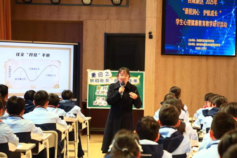 11月27日,由西咸新区教育科学研究院、三秦家长学校西咸新区分校联合主办,沣西第四学校承办的“课程润心 护航成长”学生心理健康教育教学研讨活动顺利开展。新区教育科学研究院副院长郭永波、国家二级心理咨询师刘玲玲及各学校德育负责人、心理教师、家长代表等200余人参加。