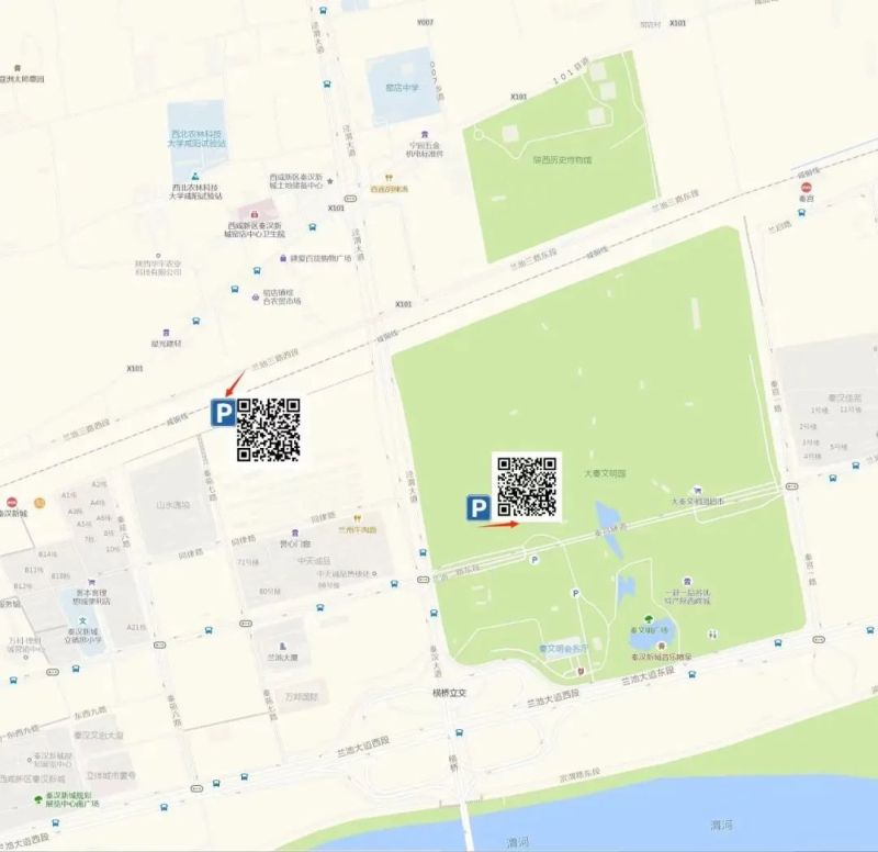 第二停车场位于秦汉新城大秦文明园附近(详见附图可扫描二维码导航前往)