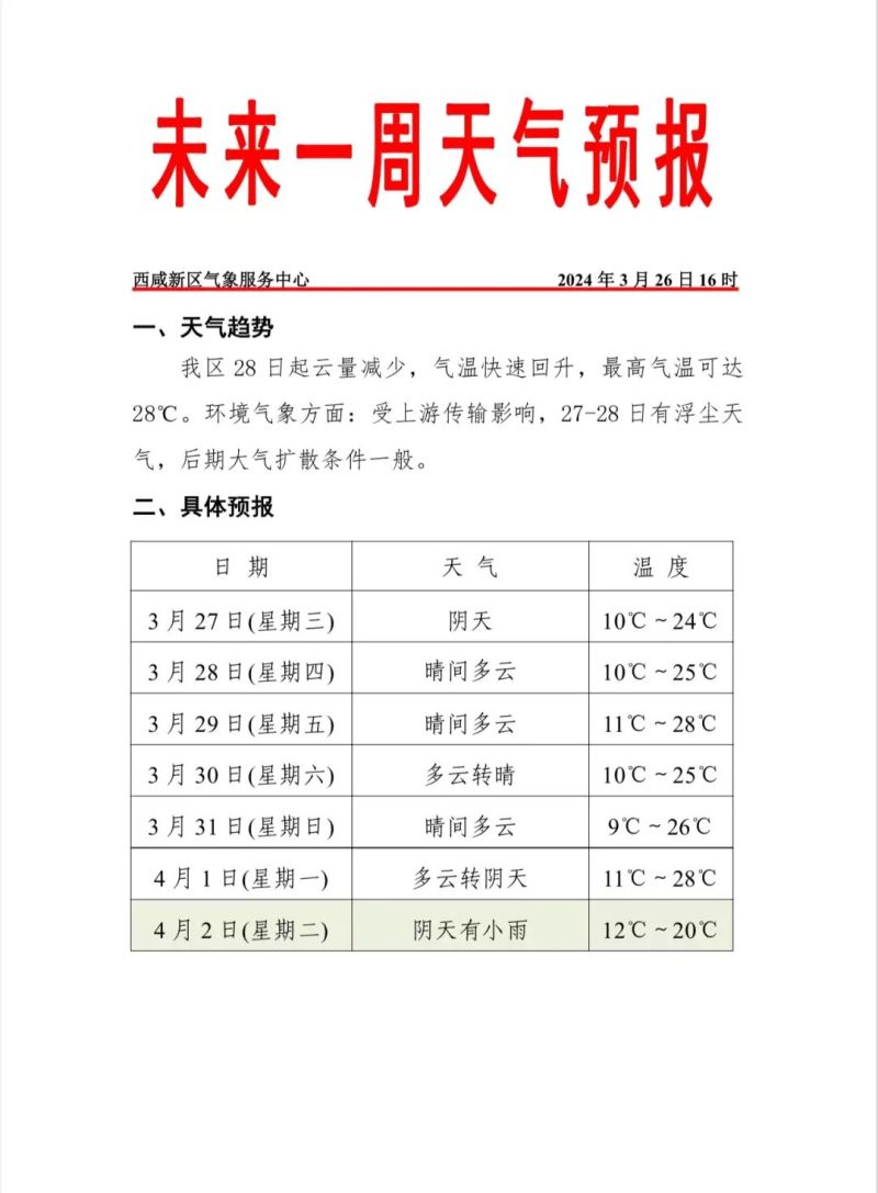 西咸新区气象服务中心2024年3月26日16时发布重要天气报告: