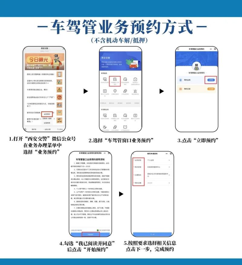 (一)通过“西安交警”微信公众号进行网上预约(预约方法详见附件一、附件二、附件三)。