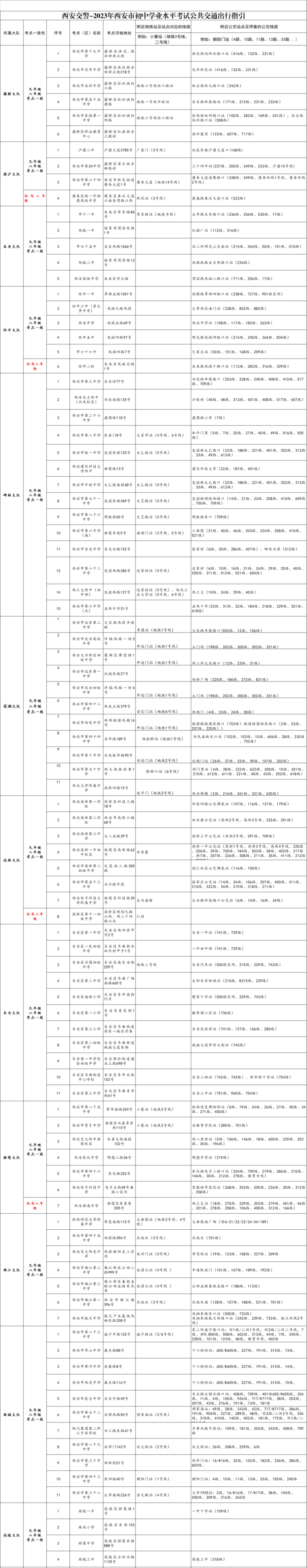 2023年西安市初中学业水平考试考点公共交通出行指引