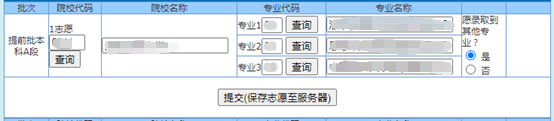 全部志愿信息输入完毕后,必须点击“提交”按钮,否则服务器无法接收到志愿信息。全部志愿确定无误后,必须点击“确认”按钮。在点击“确认”按钮之前,可以任意修改所填志愿。