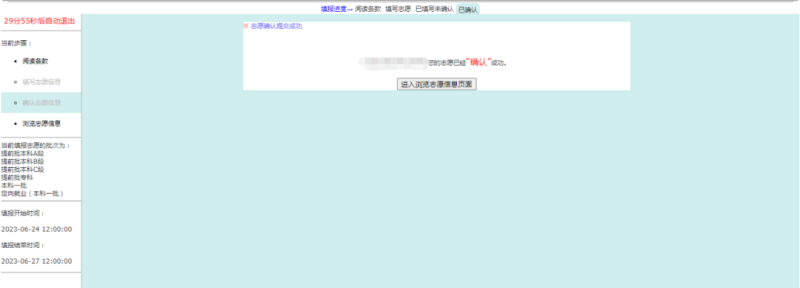 4.进入确认志愿页面,检查所填志愿,均无须修改后点击“确认”。