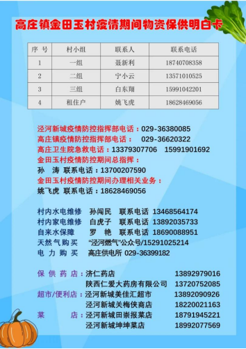 供应网点确定后,如何有效对接供需关系,真正解决好保供最后100米问题,制作“保供明白卡”成了泾河新城非常好的解决思路。目前,泾河新城崇文、永乐、高庄三个镇,已对辖区总计45个村、小区制作了专属的“保供明白卡”,三个镇也都结合自身实际,对保供信息做了尽可能详细的罗列,从日常蔬菜采购、药品采买、水电气缴费以及紧急情况联系等各方面信息都明明白白,真正做到“一卡在手,居家不愁”。据悉,目前这些明白卡已经第一时间通过各村、小区的微信群等发放到居民手中,同时为了方便老年人的需求,各镇还想办法印制纸质版“明白卡”陆续发放到群众手中。