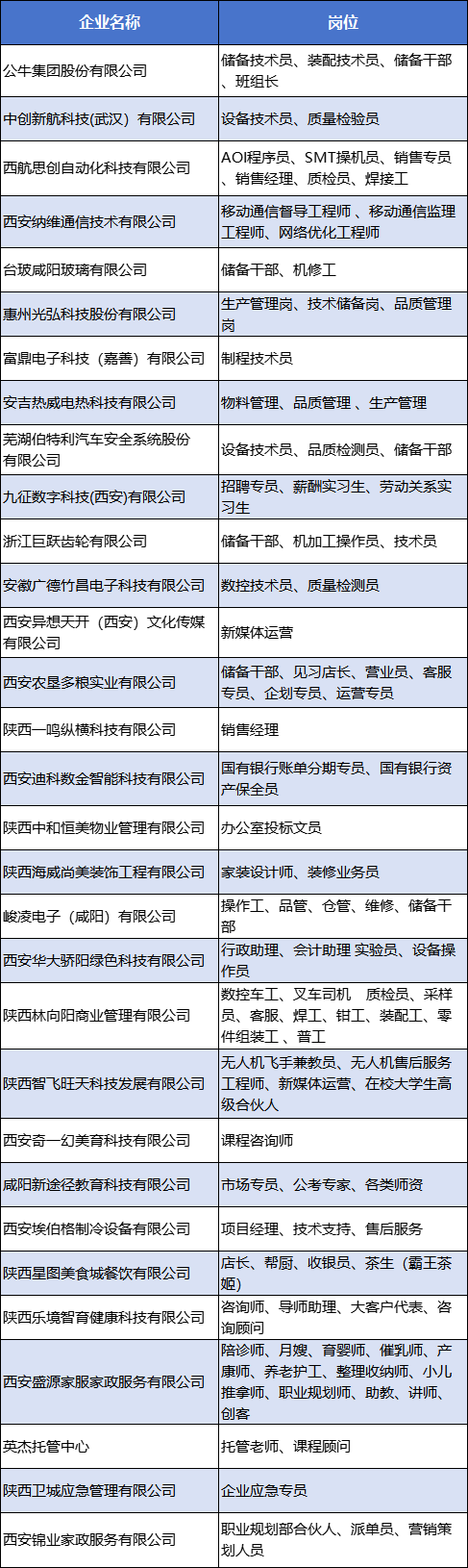 招聘岗位及企业名单