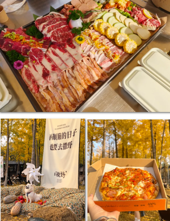玩累了,再直奔美食区,滋滋烧烤、拉丝披萨,以及围炉煮茶搭配烤红薯、玉米,冬日幸福感直接拉满,园区还提供烧烤食材调料一站式服务,无需自带装备即可轻松开吃。